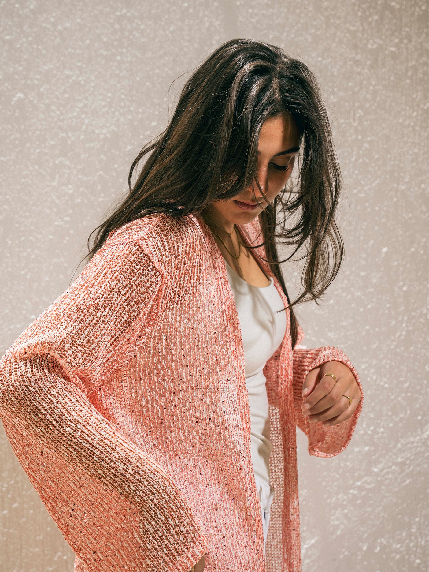 We call this a summer bestie, works as a beach coverup at day and perfect as a casual shimmery layer at night.