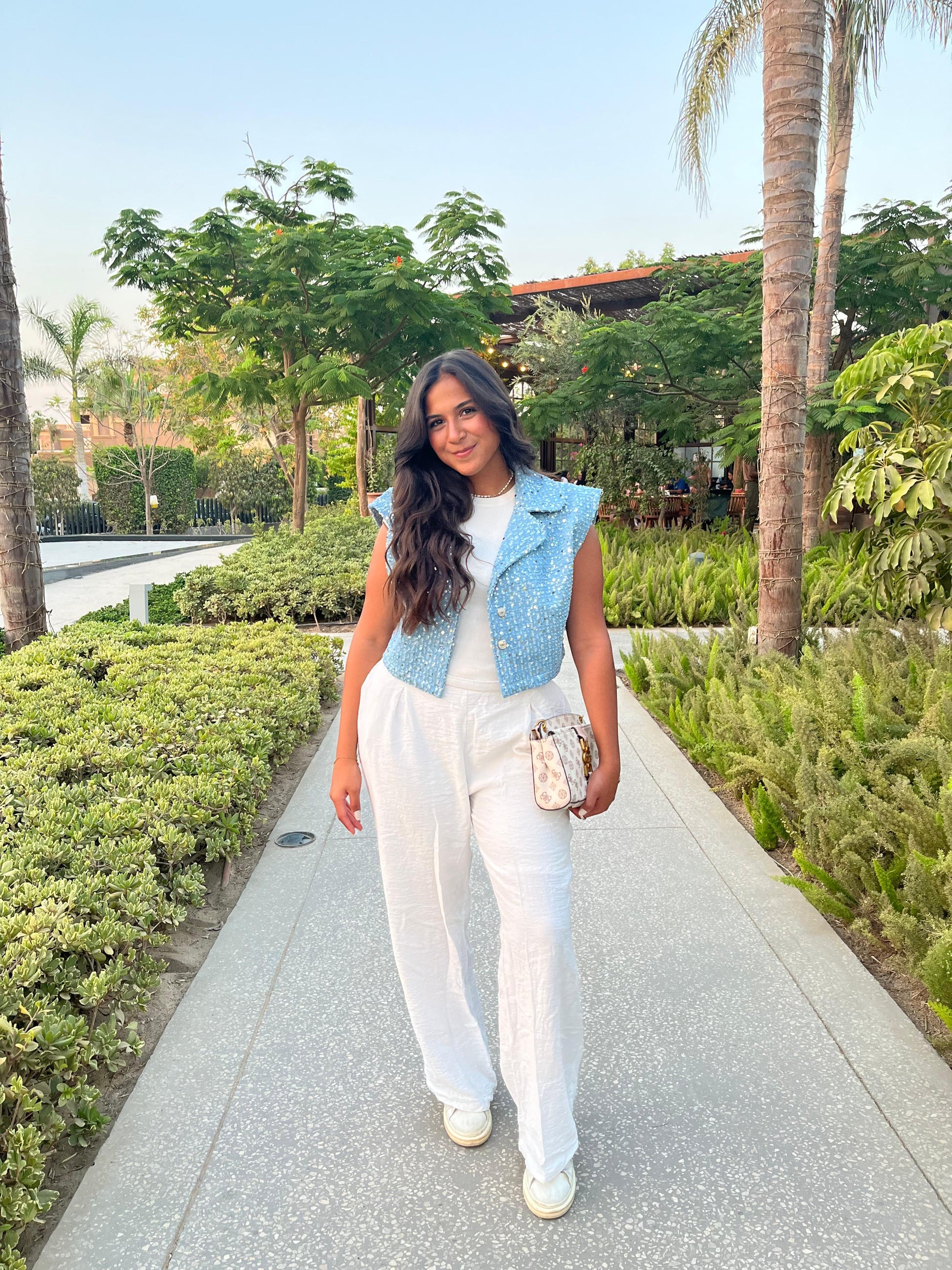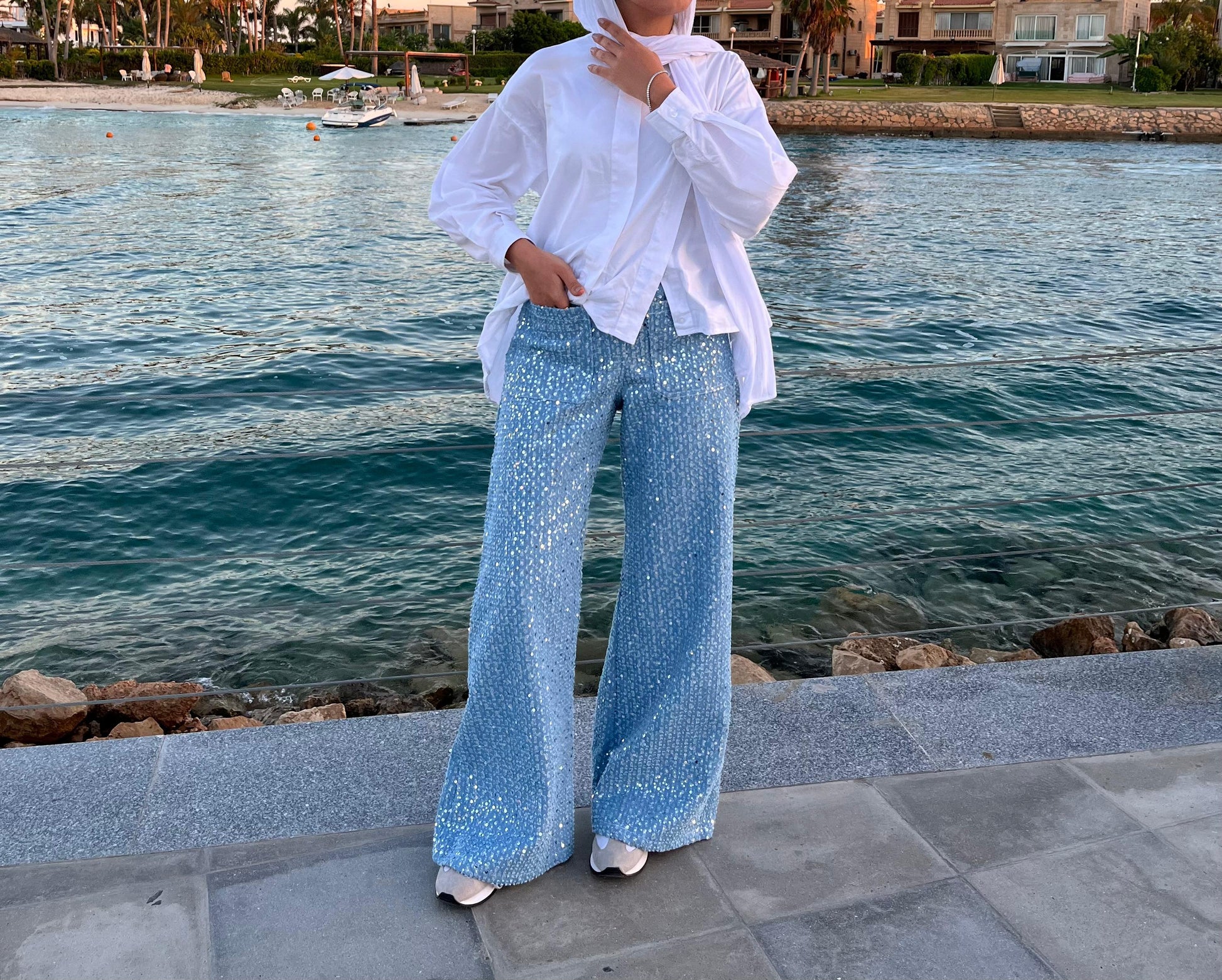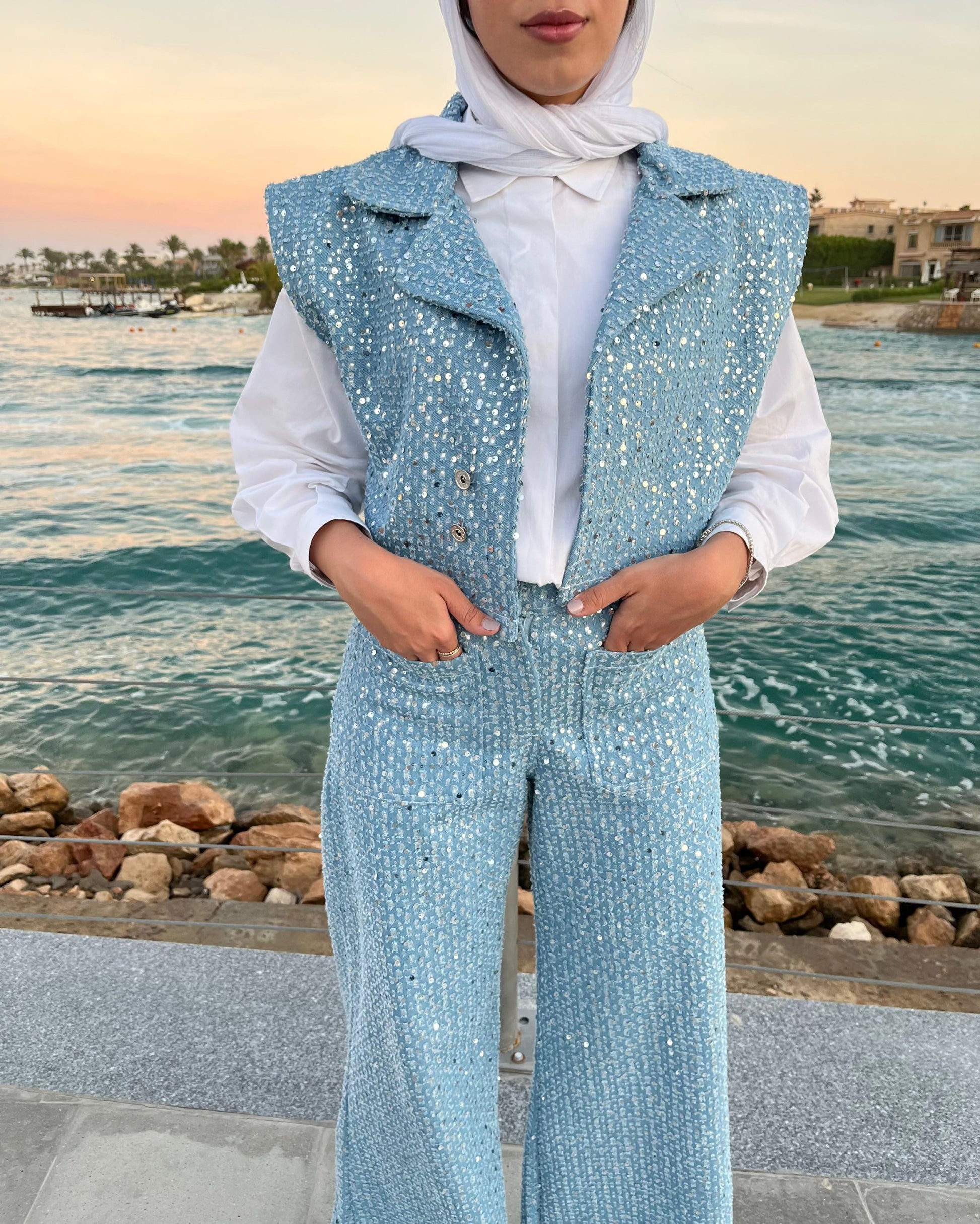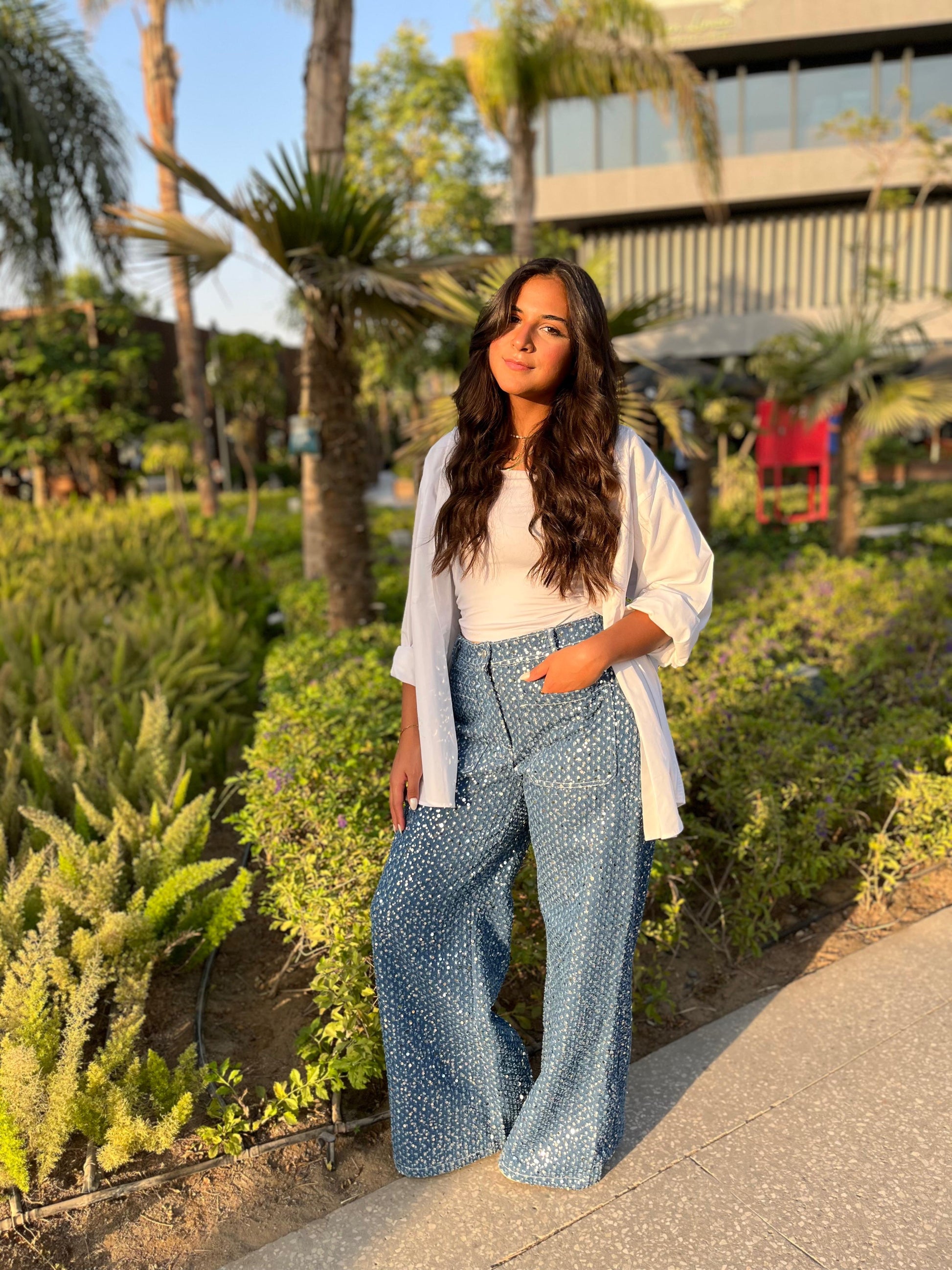 The Denim-dusk Set embodies sophisticated elegance with its embroidered rich beads and impeccable finishing. Designed for versatility, each piece can be worn separately or layered together, adding a touch of tasteful bling to any outfit. Perfect for elevating a casual look or enhancing your ensemble for a night out.